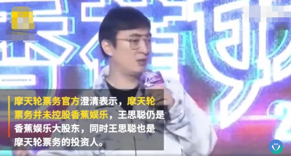 此前,网传"摩天轮票务控股香蕉娱乐,王思聪不再是大股东",摩天轮官方辟谣:王思聪仍是香蕉娱乐大股东,同时他也是摩天轮票务的投资人。