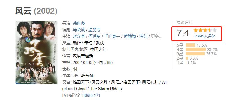 至今豆瓣评分还保持在7.4分,可以说是收视和口碑都很棒啦!当年剧中的主演,赵文卓、何润东、蒋勤勤等人,都凭借这部剧圈了一波粉丝。